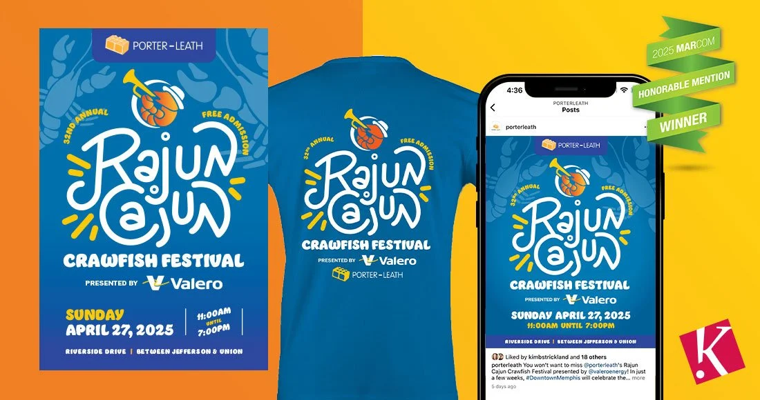 Our Pro Bono Honorable Mention recognized Kelley & Associates’ ongoing partnership with Porter-Leath’s Rajun Cajun Crawfish Festival, one of the largest crawfish festivals in the South. From creative design to promotional strategy, our team proudly supports this signature event that raises critical funds for children and families throughout the Mid-South.